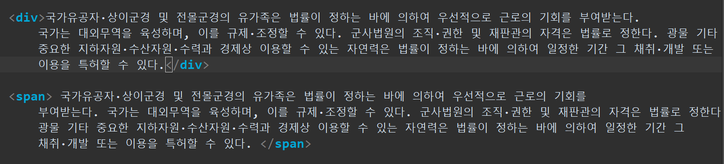 div 와 span 으로 감싼 코드를 작성하고 , 화면을 실행해보면