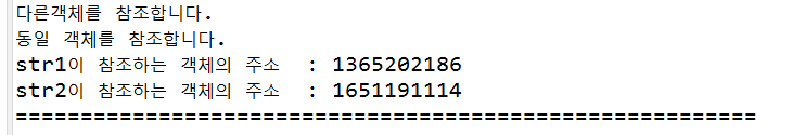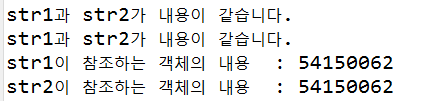 str1 과 str2 는 서로 다른 객체를 참조 하는것을 볼수잇다 !